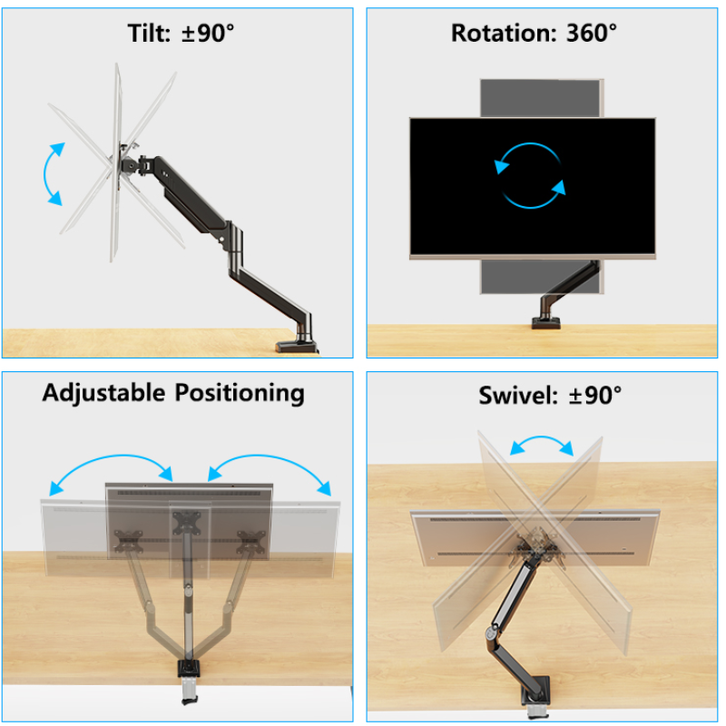 Điều chỉnh độ cao: (Tính năng tiêu chuẩn của tay đỡ màn hình) để nâng màn hình lên ngang tầm mắt, cải thiện tư thế ngồi công thái học.